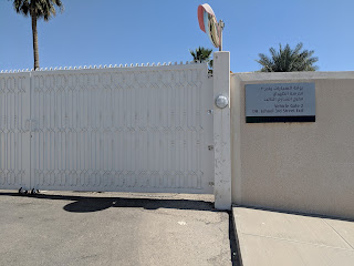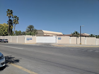 In the picture above is our house on Cactus Court - C123. My room is the one you see above the garage with the huge patio in front. The enclosing wall and door on the left weren't there before. We figure that so many homes now are enclosed for privacy since many Saudis now live in camp. They lead more sheltered/private lives. I show the tree because my mom planted that and now you can see just how big it is. Keep in mind dad retired in 1987.