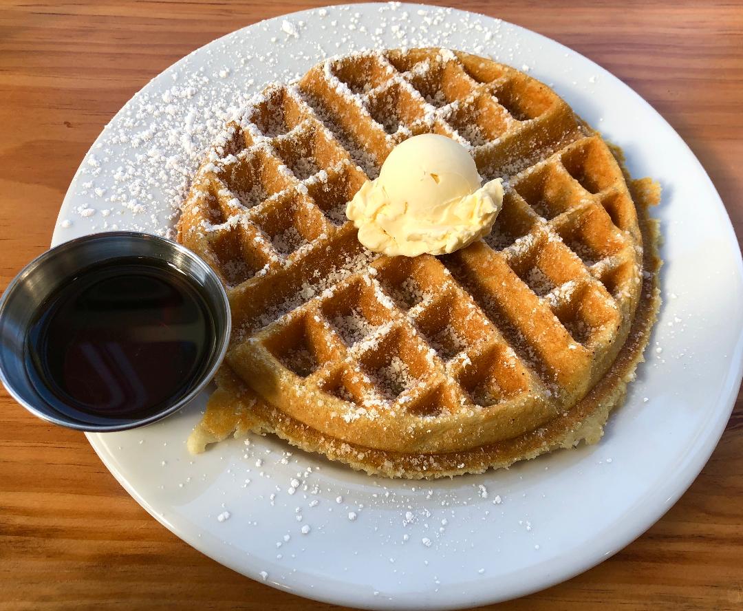 Westside is a bright and spacious coffee house in West Sacramento. They serve breakfast items, sandwiches, salads, and bagels, in addition to coffee, tea, beer, wine, and other assorted drinks. And did I mention they have vegan waffles? I'm sure you can guess what I ordered when I stopped by today. Their waffle batter is vegan, but you'll need to ask for vegan butter. Other vegan toppings include maple syrup or strawberry preserves. I don't remember the last time I'd had a waffle, and this one was every bit as good as I had hoped it would be.